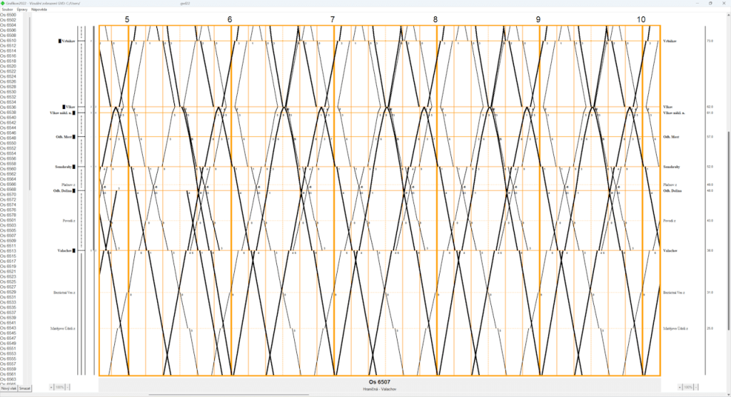 There is a wide variety of railway lines available for the simulator, including Czech and Slovak routes such as Cheb – Ústí nad Labem, Dresden – Prague – Bratislava, and Prague – Čierna nad Tisou. The simulator supports a relatively straightforward definition of timetables via structured, CSV-like files.