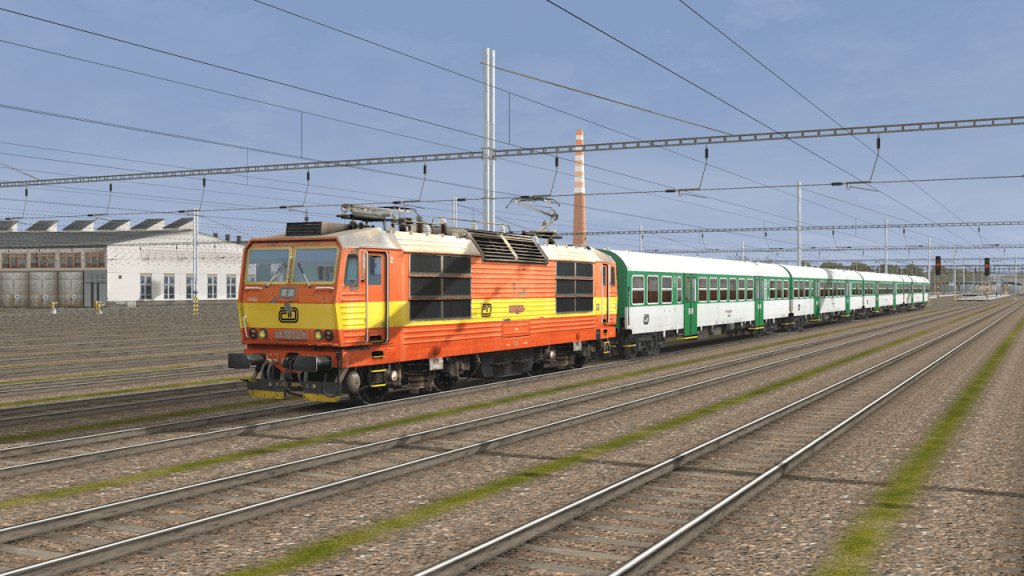 A local passenger train leaving Břeclav station in 2005 – simulated in OpenRails (CZ/SK version).